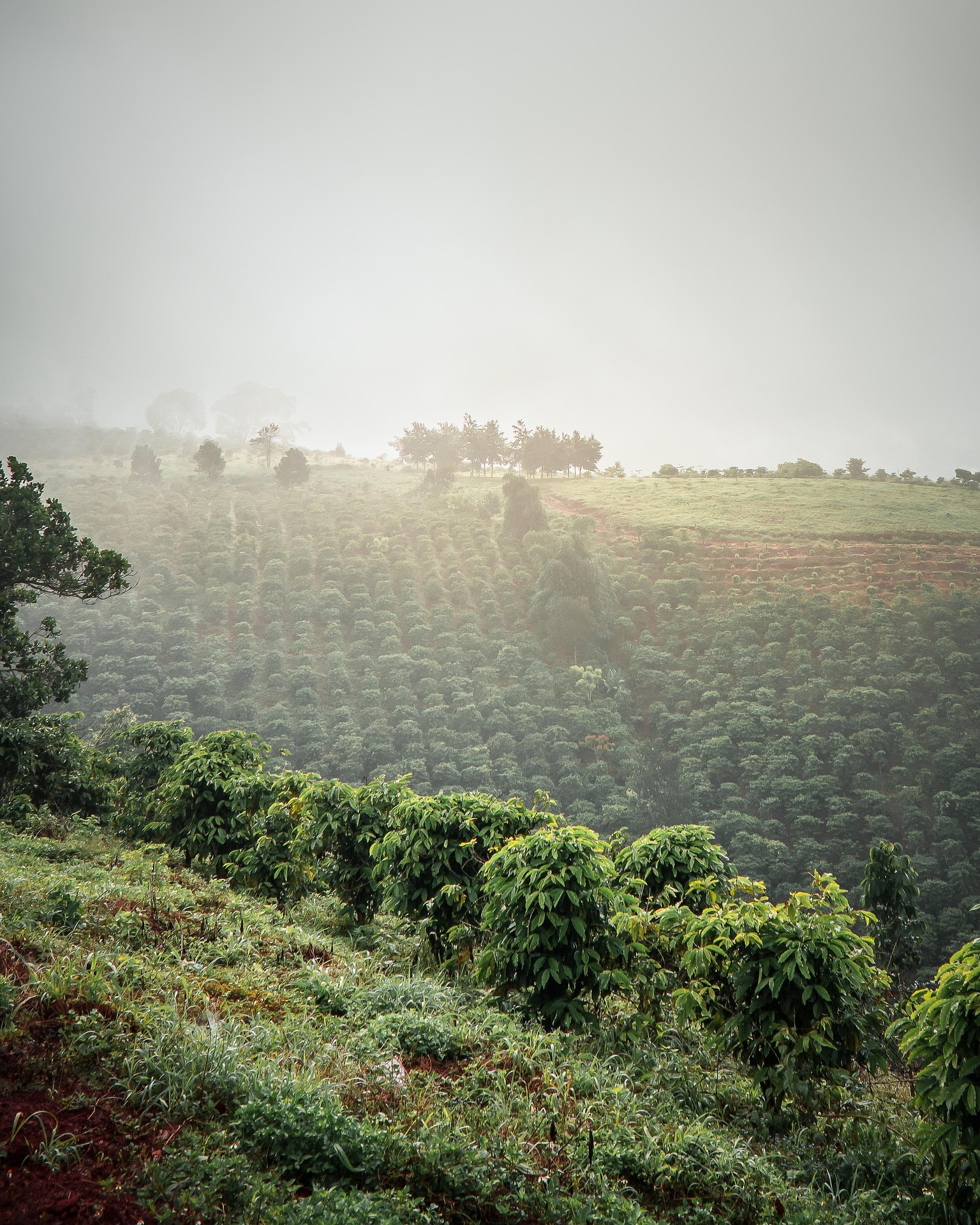 標高1,600mの高原都市ダラットは、「ベトナム・アラビカの首都」と呼ばれるアラビカ栽培の名産地です。 年間のおおよその気温は14〜23℃と涼しく、朝晩は肌寒く、日中は穏やかに暖かい“常春”の気候で、1日の寒暖差がコーヒーに豊かな甘さと香りをもたらします。霧の多い冷涼な空気と肥沃な赤土が、柑橘やベリー、花のように華やかな香りと透明感のある酸・甘さを持つコーヒーを育みます。